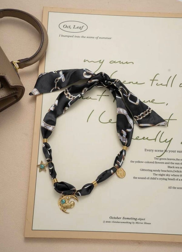 Collier Foulard noir pendentif Lune ☪️✨