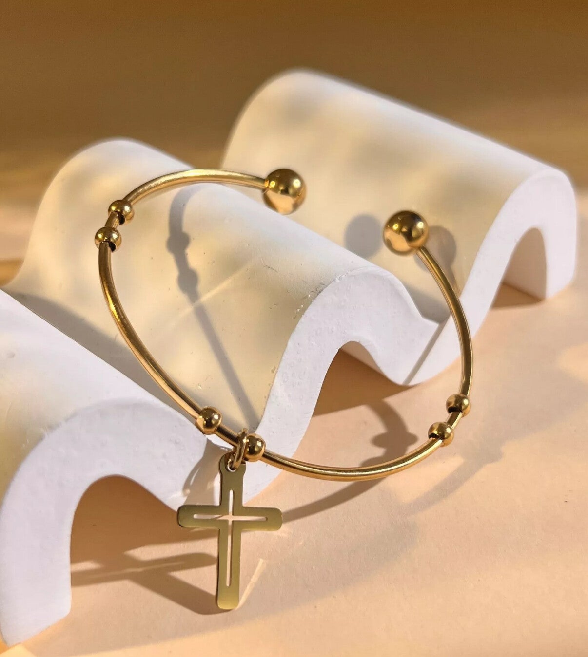 Bracelet rigide avec pendentif croix – Acier inoxydable