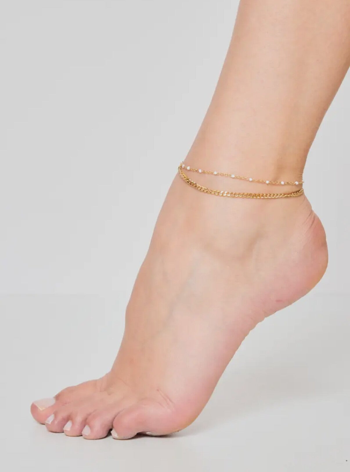 Chaîne de cheville double dorée – Perles fines