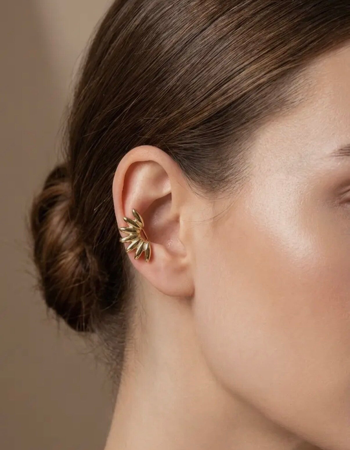 Adoptez un look tendance sans piercing avec cet earcuff doré. Son design élégant épouse parfaitement la forme de l’oreille pour une touche moderne et raffinée.
