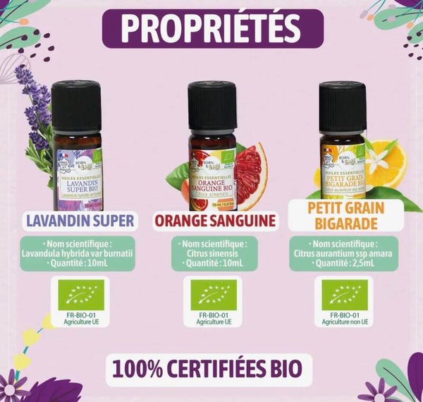 • Lavandin super : senteur florale relaxante, idéale pour le soir